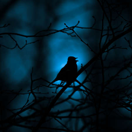 A beautiful bird silhouette against the sky. Springtime scenery with birds of Northern Europe.