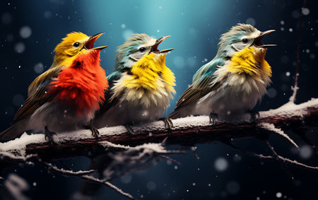 Small bird perching on branch, singing sweetly generated by artificial intelligence