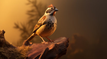 bird walking on wooden planks, vray tracing style, backlit photography, varied brushwork techniques, 8k resolution, sharp and prickly, dark orange and beige colors, environmental portraiture. ai generated