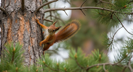 red squirrel on a tree in the forest