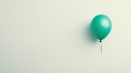 A Single green balloon floating in air against white background, minimalist style with ample copy space