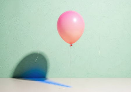 Celebrate with a single stunning red balloon against a soft pink backdrop for joyful occasion design