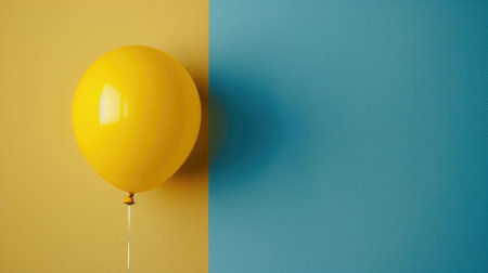 A vibrant yellow balloon floats against a matching wall, creating a lively and cheerful scene. Ideal for themes related to joy, celebration, and decoration inspiration.