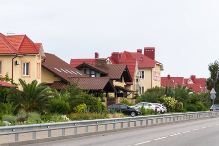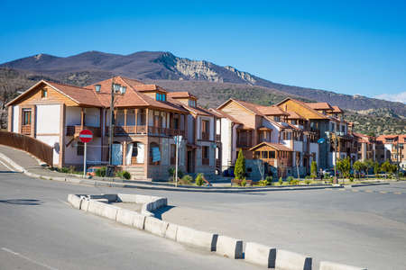 Vacation home and real estate concept. Villas in coastal town in mountains