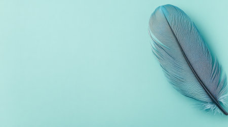 This image features a single soft blue feather gracefully resting on a light turquoise background, creating a serene and minimalist aesthetic perfect for tranquil designs.
