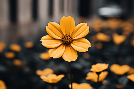 Yellow daisy with blurred bokeh background, serene nature view. Floral beauty and tranquility concept