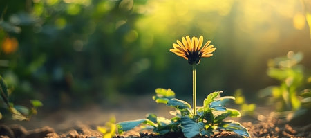 Vibrant single flower blooming in nature's embrace. celebrating earth's beauty, growth, and renewal. concept of earth day, floral elegance, nature's splendor, environmental awareness.