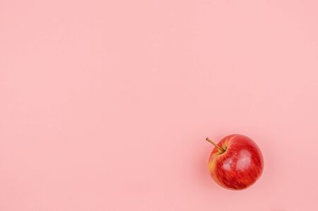 Juicy, ripe apple on a pink background. Top view background