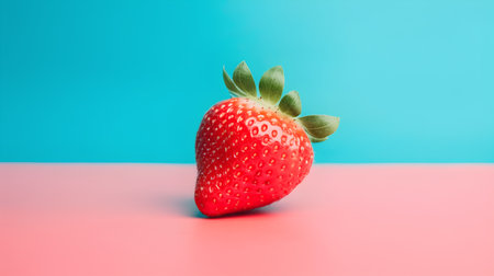 Strawberry on a blue and pink background. Minimal style.