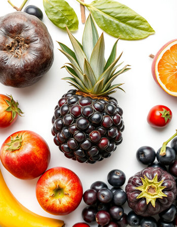 Fruit collection on a white background with copy space for text.