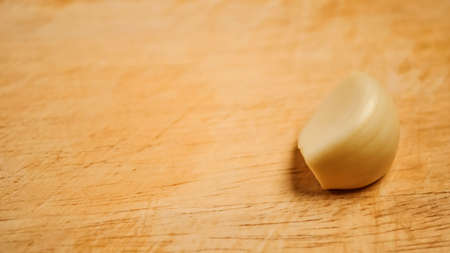 A clove of garlic over rustic wooden background