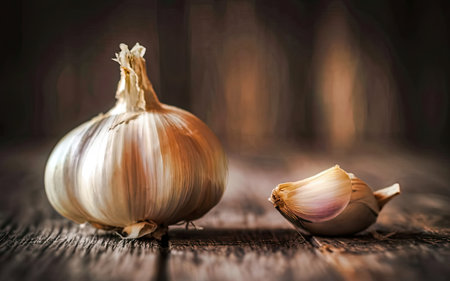 garlic on a wooden background healthy lifestyle