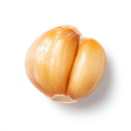 Single garlic clove, isolated on white. Clean, minimalist style. Perfect for food blogs, culinary websites, or healthy eating concepts. Versatile image conveying freshness and natural ingredients.