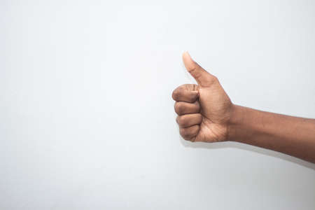 Thumbs up sign - Male hand showing thumbs up sign isolated on white background. Hand symbol sign language.