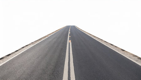 asphalt road isolated on white background with clipping path, perspective view
