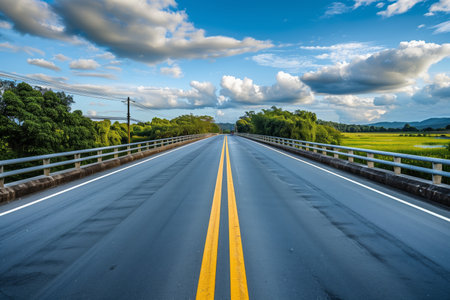 Empty country asphalt road with yellow line,inspiration concept.