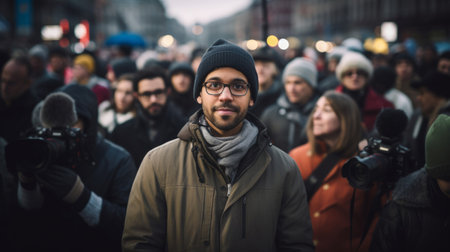 Engaging journalist live city report vibrant even light