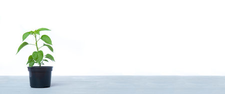 Pepper seedlings isolated against white. Plant at home concept