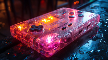 A Clear Retro Handheld Game Console With Illuminated Buttons