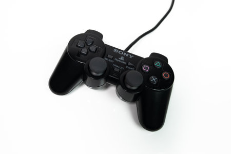 Sony Dualshock 2 controller for PlayStation 2 Games Console. Isolated on white background.