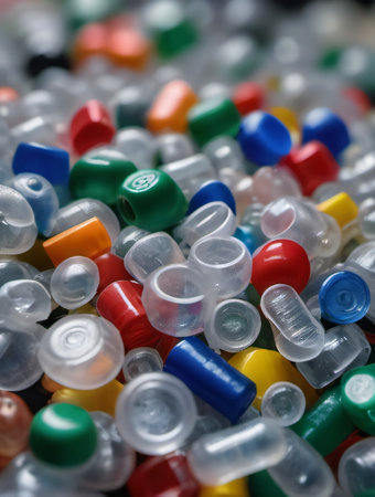 Close up of many colorful plastic bottle caps on white background. Stop plastic pollution concept