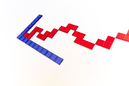 Red growth arrow on blue background. Arrow graph going up. The economic growth