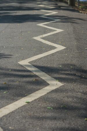 The signs and symbols on bicycle path at public park.