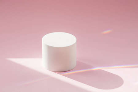 White round shapes on a pink abstract background. A scene with geometric shapes. Minimal boxes and a geometric podium. An empty showcase for the presentation of a cosmetic product. fashion magazine.