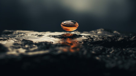 A glass of a liquid sitting on top of some rocks, AI