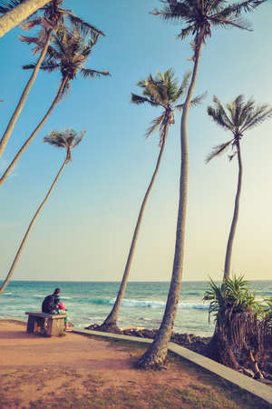 Palms trees. secret beach. Mirissa, Sri Lanka.