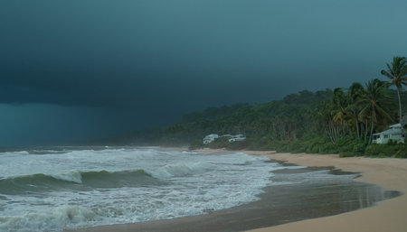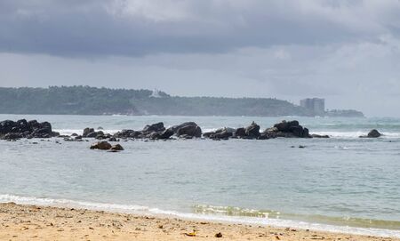 Panoramic view of a wild tropical beach in southern part of Sri Lanka, Galle city. The tropical climate city in the south of Sri lanka. It’s storm is coming.