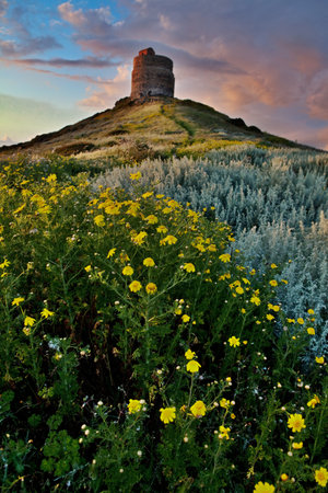 Old stone tower on a small island on Sardinia