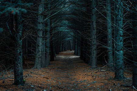 Mystical Pine Forest in Dramatic Twilight