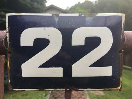 Plate with number twenty, detail of a data plate with a figure of numbers