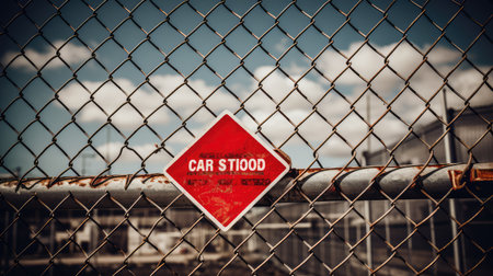 Warning sign and fenced perimeter enclosing a deserted building construction zone