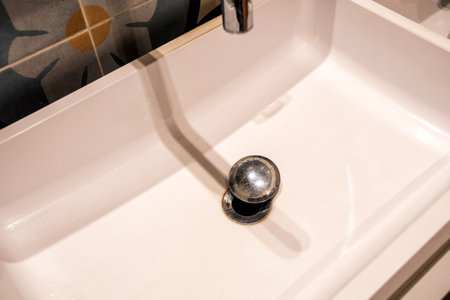 Modern bathroom with a broken stopper top. Cleaning and repairing