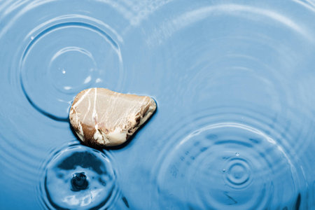 Flat stone in water on blue background