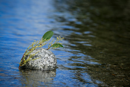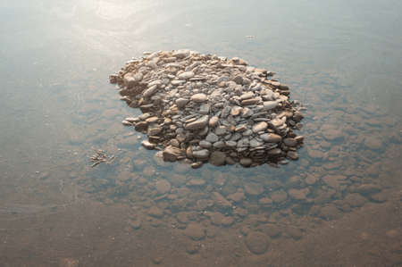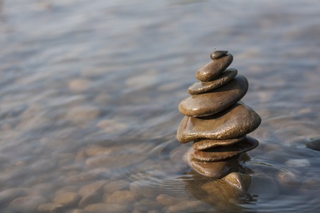 Gravels on each other in shallow creek; Zen concept