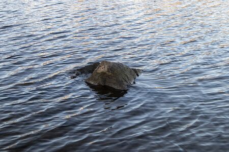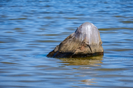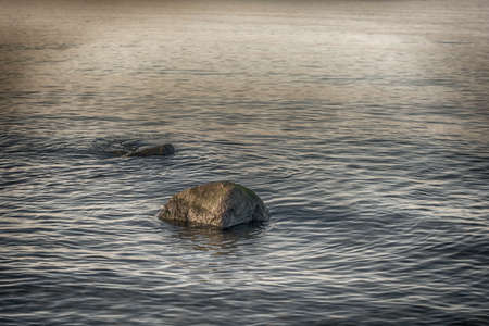 Small boulder protruding from sea water on the Gulf of Riga.