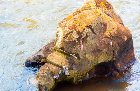 Stone with corals on the Iguazu river, Garganta del Diablo, Brazil, Argentina. With selective focus