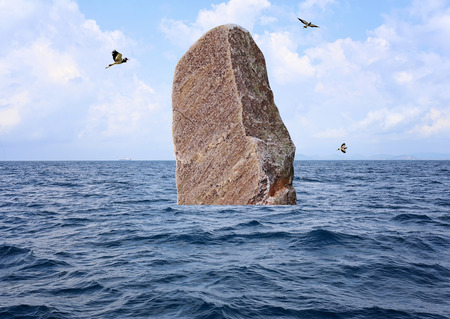 Rock mountains poke on the sea,Concepts of strength and natural phenomena.