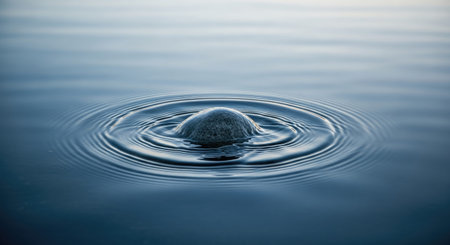 Ripples on a smooth water surface with a stone in the foreground