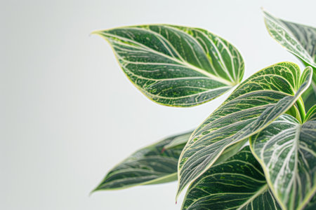Close up of green leaves on white background with copy space for text