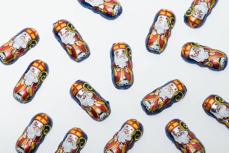 Close up of Sinterklaas. Saint Nicholas chocolate figures of Dutch character of Santa Claus.with copy-space.