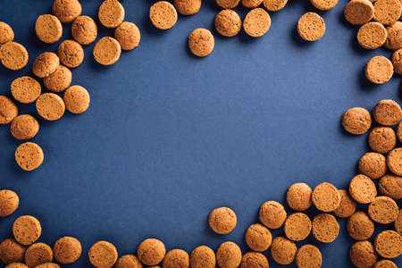 Dutch holiday Sinterklaas, St. Nicholas background with kruidnoten, pepernoten, traditional sweets