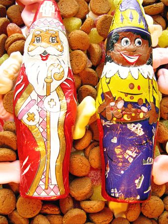 Chocolate Sinterklaas and Black Piet with ginger nuts