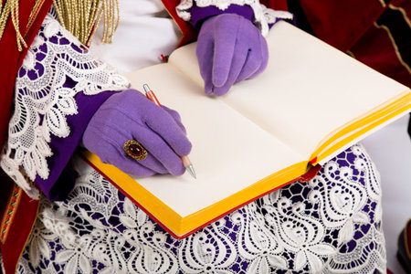 Detail Sinterklaas with empty book. isolated on white background. Dutch character of Santa Claus