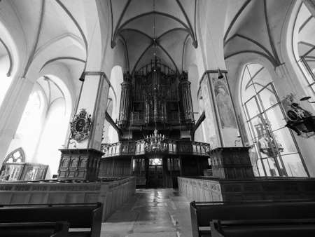 LUEBECK, GERMANY - CIRCA MAY 2017: St Jakobi (St James) church in black and white