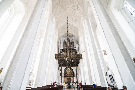 Gdansk, Poland - Juny, 2019. Famous cities in Poland Gdansk - Danzig. White Gothic vault in Cathedral. Monument in Old Town.
