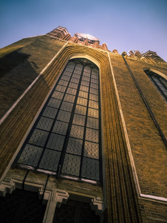 Main tower of St. Lawrence Church rising to heaven, stunning historic architecture in Rotterdam, Netherlands.